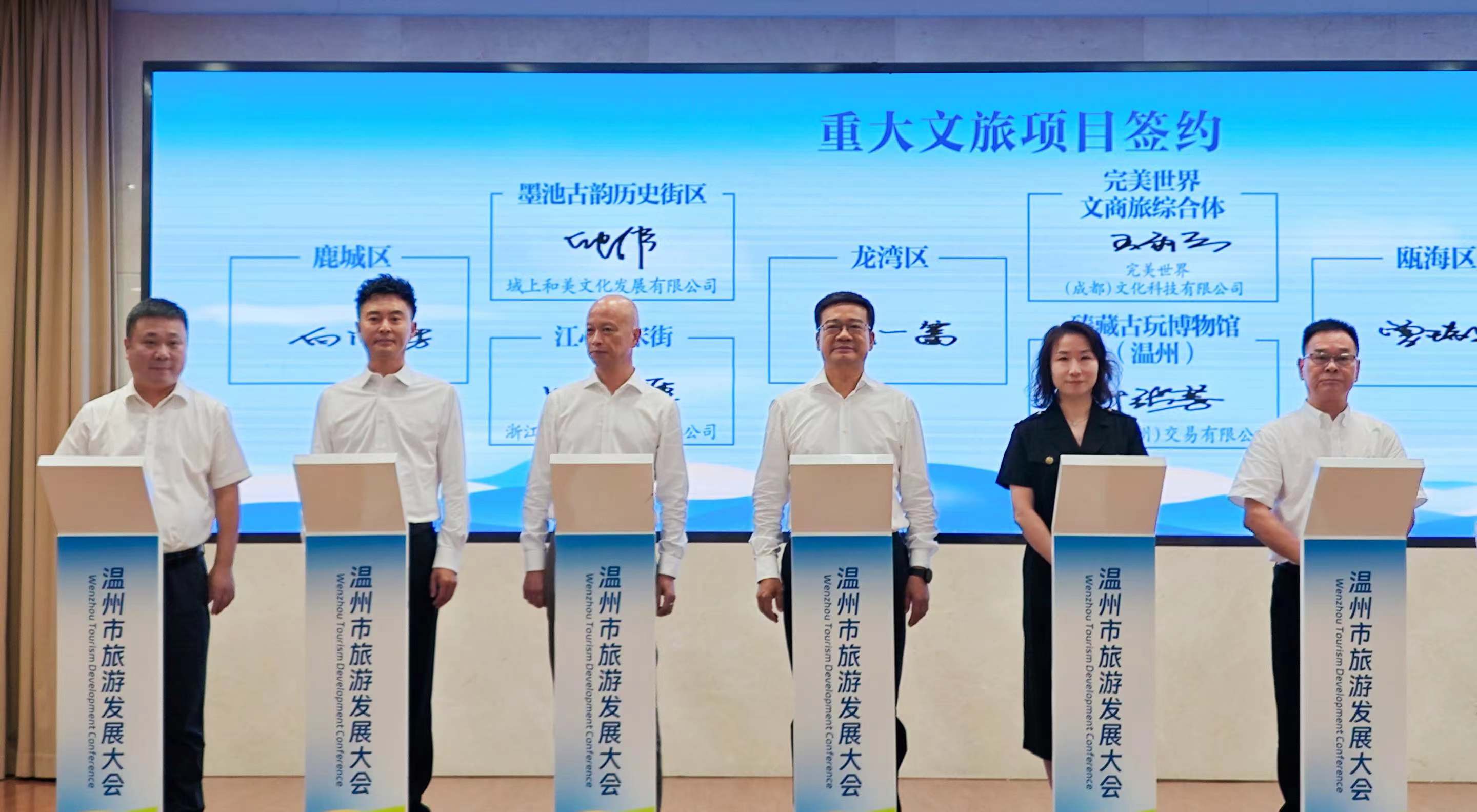 域上和美集團董事長邱偉參加此次大會,并在現(xiàn)場舉行的重大文旅項目簽約儀式上,邱偉董事長與溫州市鹿城區(qū)委書記白洪楞代表雙方在大會上簽約,雙方將合作實施墨池古韻歷史街區(qū)項目優(yōu)化提升,合力打造彰顯山水斗城古韻的人文街區(qū)、富有煙火氣息的活力街區(qū)。