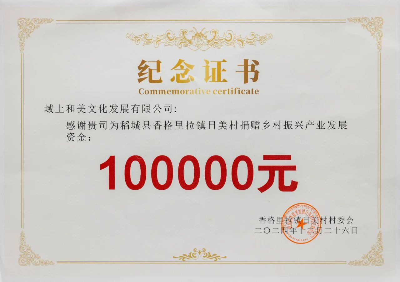 捐贈儀式由稻城縣香格里拉鎮(zhèn)人民政府鎮(zhèn)黨委副書記、鎮(zhèn)長白志宇主持。域上和美集團黨委副書記侯懿芝代表集團捐贈30萬元,主要用于支持香格里拉鎮(zhèn)瓦龍村、日美村溫泉旅游、玫瑰種植等特色產業(yè)培育,同時,集團設立獎學金、助學金,援助寄宿制學校改善住宿條件,惠澤當?shù)貙W子。四川省文化產業(yè)商會積極號召會員企業(yè),捐贈物資價值 3.5 萬元,用于改善學校體育設施,豐富學生文化體育生活。