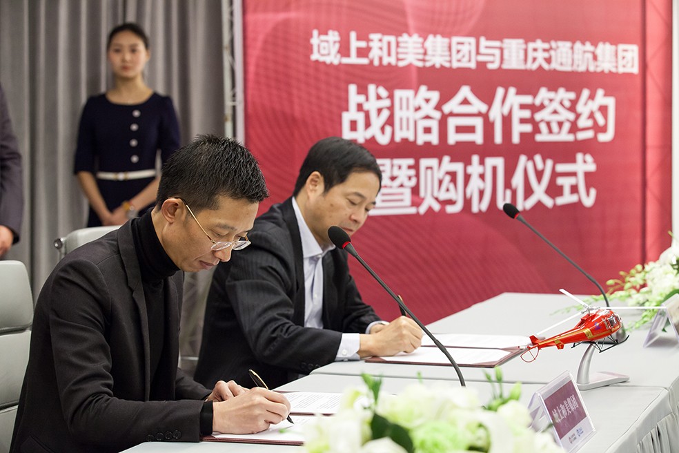 儀式上,域上和美集團總裁何平、重慶通航集團總經(jīng)理龔偉分別代表雙方先后在戰(zhàn)略協(xié)議和購機合同上簽字。其后,域上和美董事長邱偉、重慶通航董事長黃勇分別發(fā)表了講話。邱偉表示:“中國通用航空產(chǎn)業(yè)前景廣闊,中國文化創(chuàng)意及文化旅游產(chǎn)業(yè)方興未艾,雙方皆有巨大發(fā)展?jié)摿?。域上和美集團與重慶通航集團的此次合作,是文創(chuàng)旅游產(chǎn)業(yè)界與通用航空產(chǎn)業(yè)界的一次強強聯(lián)合。我們將充分利用重慶通航集團提供的技術、設備和資源條件,致力于通用航空概念下的文創(chuàng)旅游項目的投資與開發(fā),為文化旅游經(jīng)營探索出一條新路子?!秉S勇董事長表示:“重慶通航集團與域上和美集團的合作,不僅是兩家企業(yè)的合作,也是兩大產(chǎn)業(yè)的合作。意味著文旅產(chǎn)業(yè)和通用航空產(chǎn)業(yè)互為資源平臺,各自拓寬了自己的產(chǎn)業(yè)發(fā)展空間。這種產(chǎn)業(yè)創(chuàng)新必然為雙方創(chuàng)造出互利共贏的局面?!睋?jù)悉,簽訂購機合同,只是雙方具體合作的一部分,目前,域上和美與重慶通航也正在就商業(yè)直升機和商業(yè)固定翼飛機的文旅運用項目展開磋商,探索合作途徑。