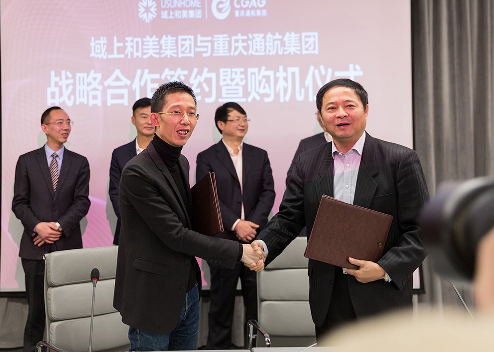 2015年12月25日上午,域上和美集團與重慶通用航空產(chǎn)業(yè)集團在位于成都保利中心南塔的域上和美集團總部舉行了戰(zhàn)略合作簽約儀式,就雙方跨產(chǎn)業(yè)合作達成協(xié)議。同時,域上和美集團采購重慶通航集團兩架航機的合約也同時簽定。域上和美集團董事長邱偉、總裁何平以及副總裁廖強,重慶通用航空產(chǎn)業(yè)集團董事長黃勇、總經(jīng)理龔偉、副總經(jīng)理郭華強以及雙方集團其他領導層與國內各主流媒體記者出席了簽約儀式。