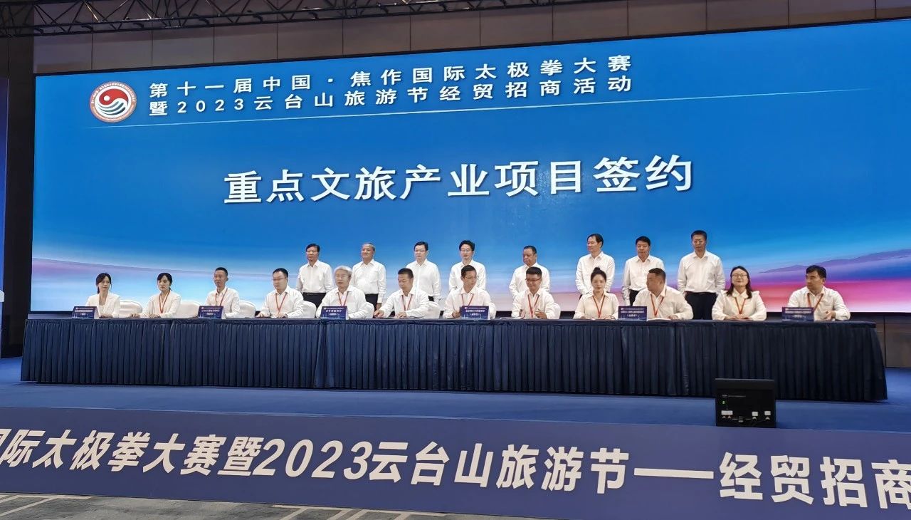 9月18日,第十一屆中國·焦作國際太極拳大賽暨2023云臺山旅游節(jié)(以下簡稱“一賽一節(jié)”)經(jīng)貿(mào)招商活動項目集中簽約儀式在焦作市舉行。河南省商務廳二級巡視員張新亮,焦作市市長李亦博,市委副書記、政法委書記劉冰,市人大常委會主任李民生,市政協(xié)主席宮松奇,副市長宗家楨、吳軍、程寶成出席并鑒簽。
