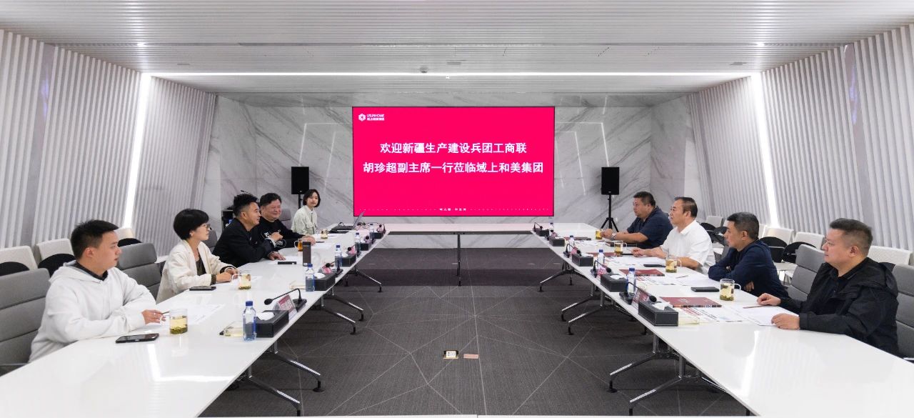 10月9日,新疆生產(chǎn)建設(shè)兵團(tuán)工商聯(lián)副主席、兵團(tuán)川渝商會(huì)會(huì)長(zhǎng)胡珍超帶隊(duì)到訪域上和美集團(tuán),域上和美集團(tuán)創(chuàng)始人、董事長(zhǎng)邱偉接待胡珍超一行。雙方進(jìn)行座談交流。