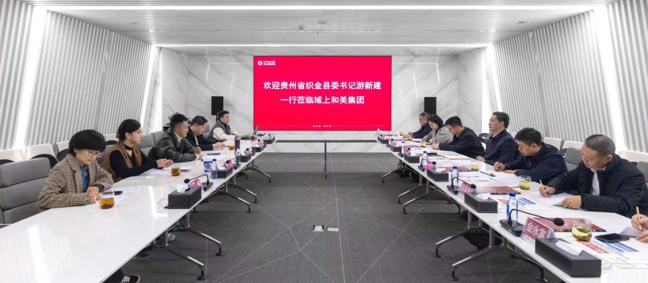 11月14日,貴州省畢節(jié)市織金縣委書記游新建率隊(duì)到訪域上和美集團(tuán)考察調(diào)研,域上和美集團(tuán)創(chuàng)始人、董事長邱偉接待游新建書記一行。雙方圍繞旅游景區(qū)升級(jí)、文化資源開發(fā)等進(jìn)行座談交流。