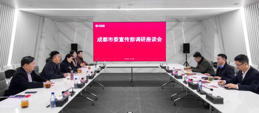 1月9日,成都市委宣傳部副部長、市新聞出版局(市版權(quán)局)局長王炯率隊調(diào)研域上和美集團(tuán),在參觀集團(tuán)在蓉部分文旅項目后召開調(diào)研座談會。市委宣傳部產(chǎn)業(yè)發(fā)展處處長、市文促中心副主任文紹春,產(chǎn)業(yè)處干部崔翔陪同調(diào)研;域上和美集團(tuán)董事長邱偉、執(zhí)行總裁李元媛、副總裁吳偉,域上和美文化發(fā)展有限公司副總裁陳瑯及相關(guān)部門負(fù)責(zé)人參加調(diào)研座談。