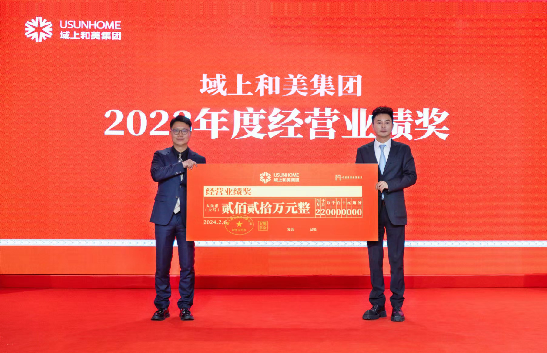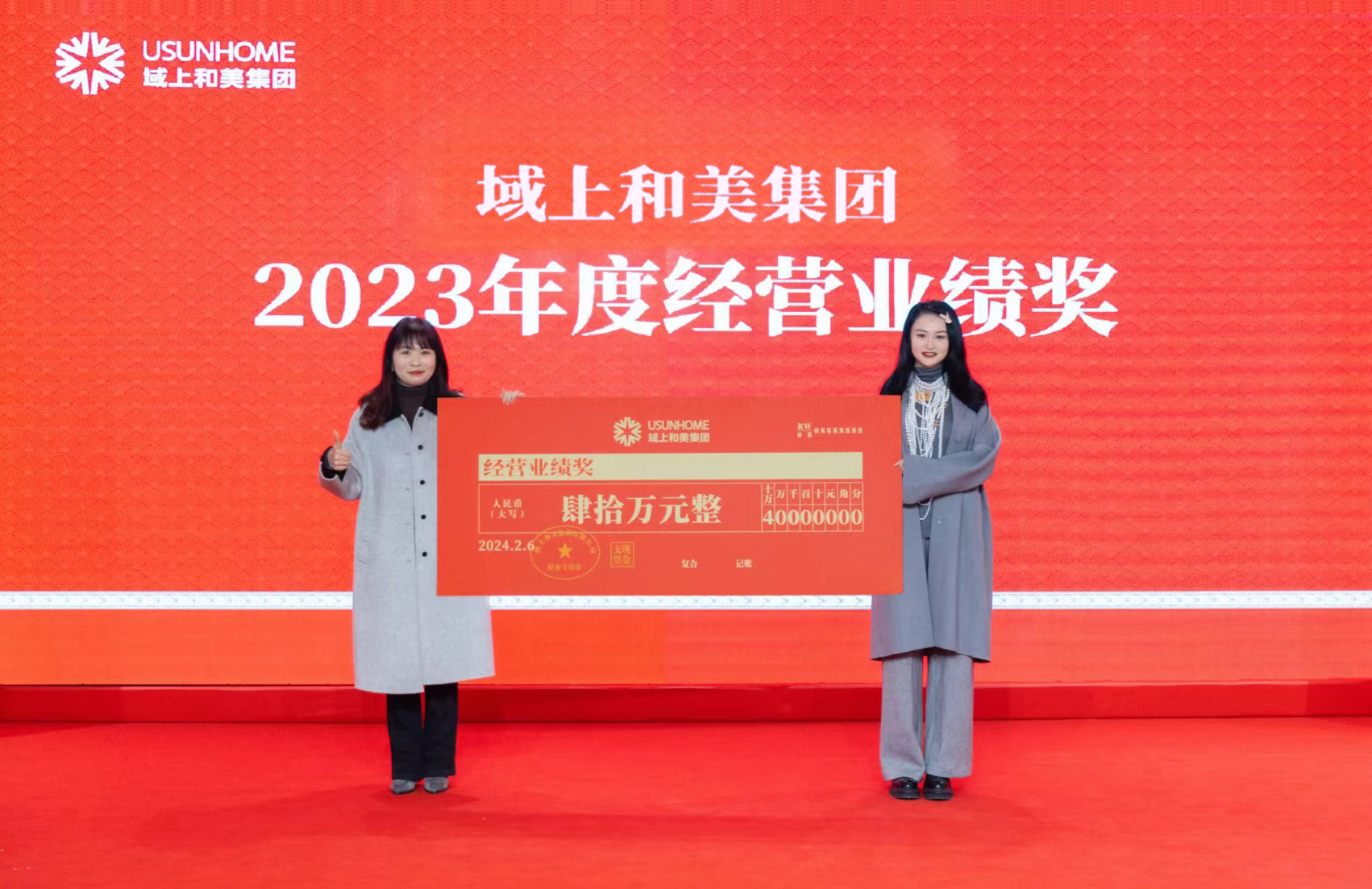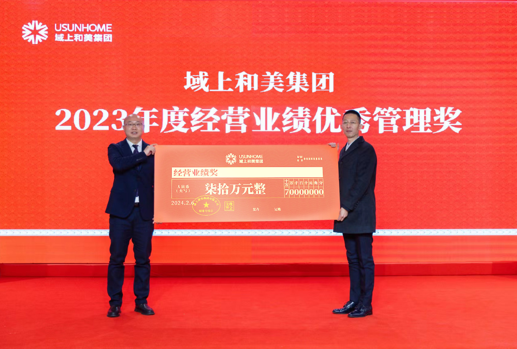 會議公布了集團重要人事任命。大會對2023年度35位優(yōu)秀員工、11個優(yōu)秀團隊、3個經(jīng)營業(yè)績優(yōu)秀團隊及14個優(yōu)秀業(yè)績支持部門進行了表揚與嘉獎。本次頒獎,旨在樹立榜樣,激勵先進,鼓舞更多和美人奮發(fā)有為,努力擔(dān)當。和美布達拉有限公司總經(jīng)理李兆上臺發(fā)表獲獎感言。